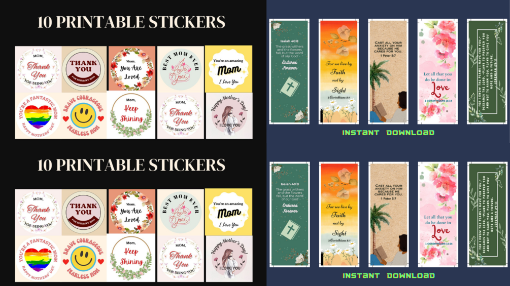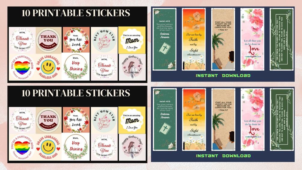 Why do you need this? Because staying connected to God's Word shouldn't end when you close the book. These bookmarks help keep your faith front and center, wherever you go. And with Mother's Day just around the corner, our beautifully crafted stickers are the ideal way to show your appreciation. They're not just decorations—they're expressions of love that make any gift extra special. Whether it's marking your favorite passage or adding a heartfelt touch to a gift, these items are designed to bless and uplift both you and your loved ones."